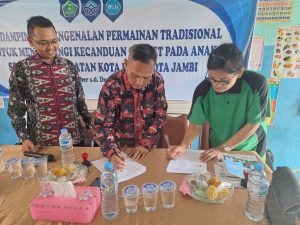 Jambi, 21 November 2024 – SDN 94 Kota Jambi menjadi saksi sebuah momen penting dengan dilaksanakannya acara penandatanganan kerjasama dan pengabdian kepada masyarakat (PkM) yang bertujuan untuk meningkatkan profesionalisme guru melalui pendekatan inovatif dalam pembelajaran. Acara yang berlangsung pada hari Kamis, 21 November 2024, ini mengusung tema “Pelatihan Penelitian Tindakan Kelas Berbasis Pendekatan Mindful, Meaningful, dan Joyful Sebagai Strategi Pengembangan Profesionalisme Guru untuk Meningkatkan Kualitas Pembelajaran.”