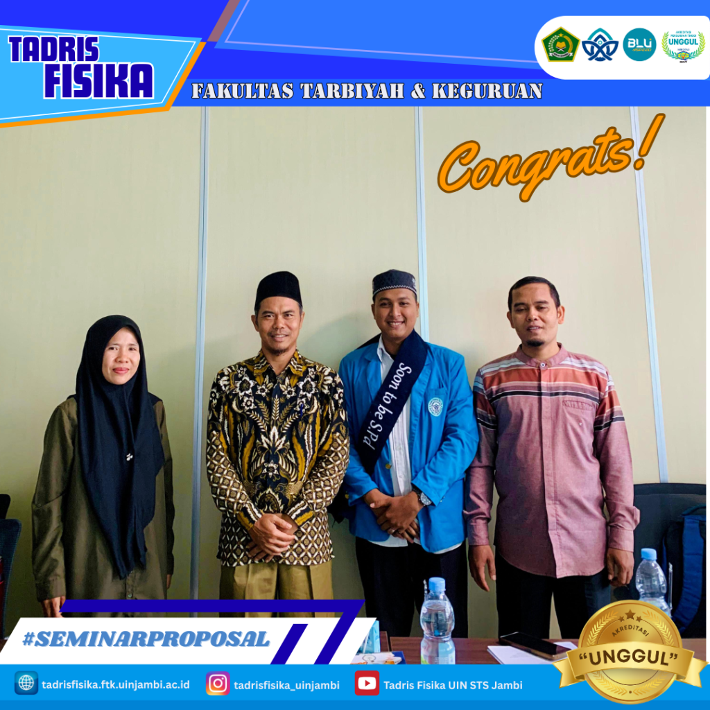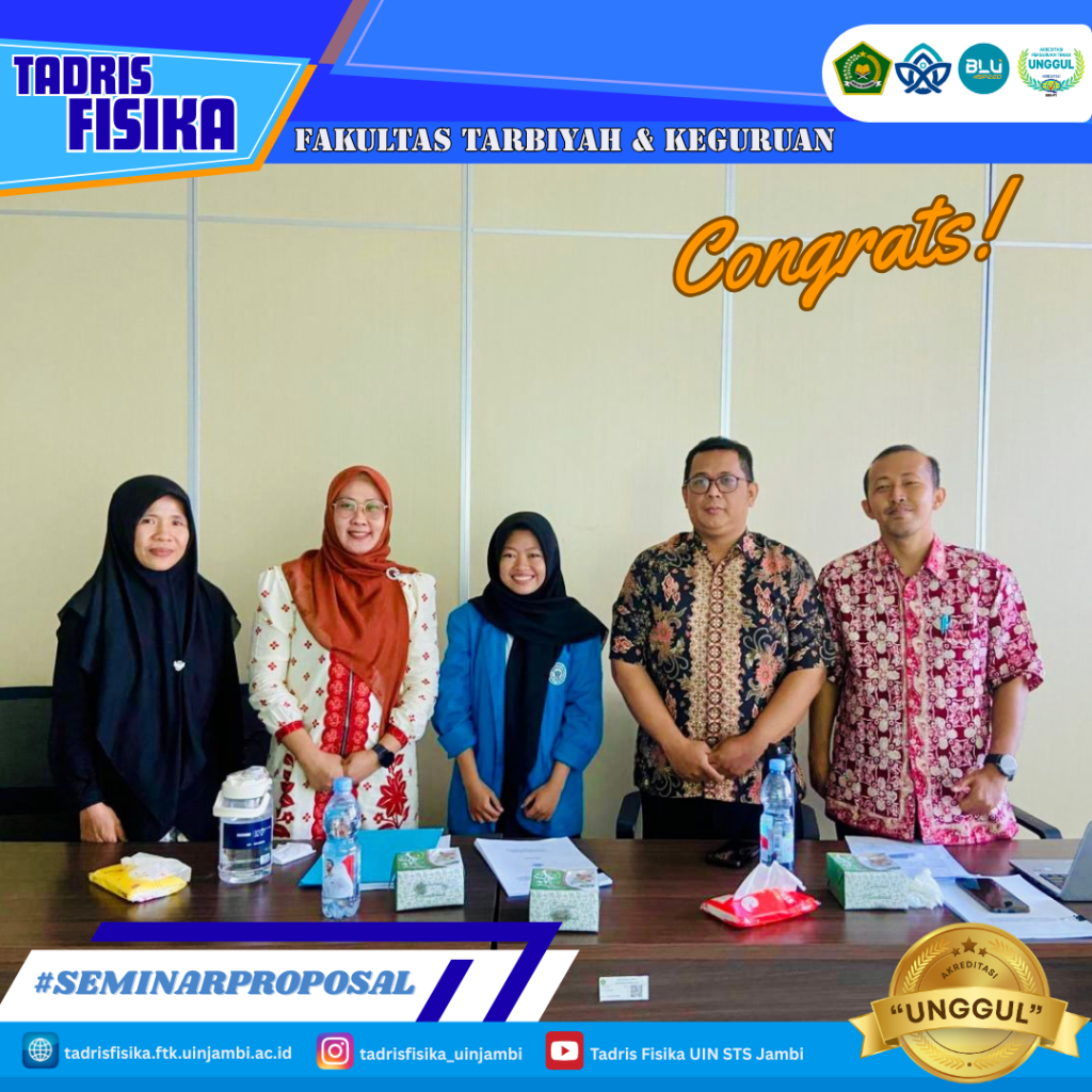 Program Studi Tadris Fisika Fakultas Tarbiyah dan Keguruan UIN Sulthan Thaha Saifuddin Jambi terus menunjukkan komitmennya dalam mendukung mahasiswa untuk menyelesaikan tugas akhir tepat waktu. Bentuk dukungan tersebut diwujudkan melalui pelaksanaan seminar proposal yang berlangsung dengan suasana akademik yang konstruktif dan penuh semangat.