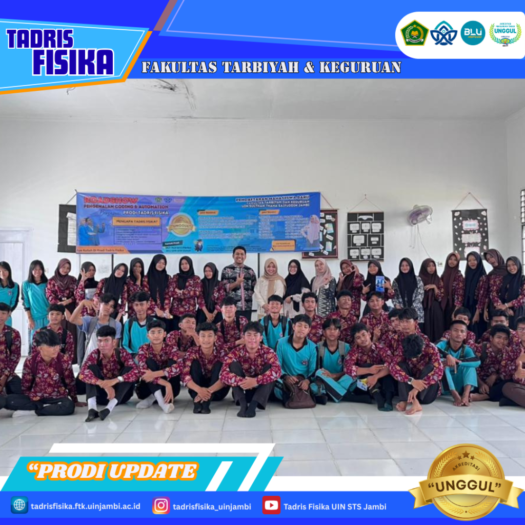 Jambi, 29 Januari 2028 – Program Studi Tadris Fisika Fakultas Tarbiyah dan Ilmu Keguruan (FTIK) UIN Sultan Thaha Saifuddin Jambi melaksanakan kegiatan kunjungan edukatif ke SMAN 11 Muaro Jambi. Kegiatan ini bertujuan untuk mengenalkan coding dan automation kepada siswa sekaligus melakukan sosialisasi Penerimaan Mahasiswa Baru (PMB).