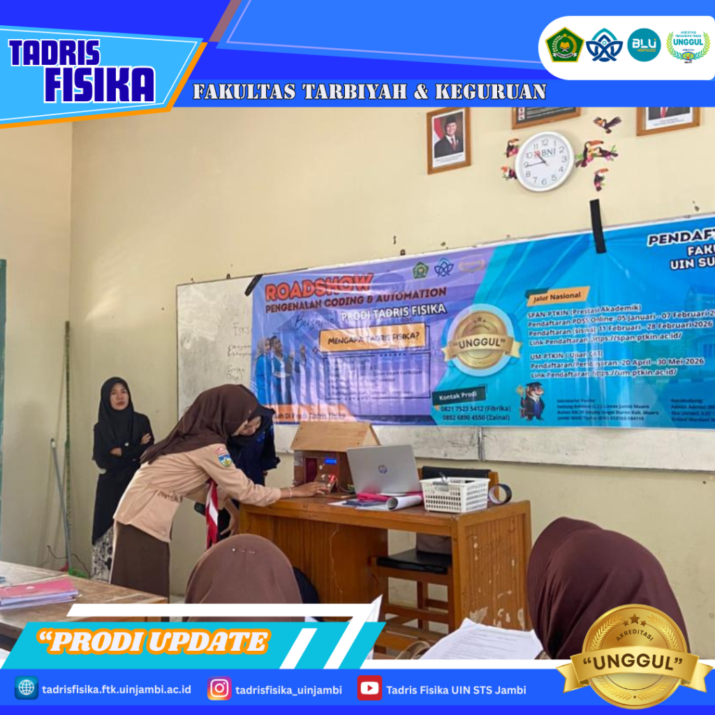 Jambi, 4 Februari 2026 – Siswa SMAN 1 Muaro Jambi menunjukkan antusiasme tinggi dalam mengikuti kegiatan pengenalan coding dan automation yang diselenggarakan oleh Program Studi Tadris Fisika. Kegiatan ini bertujuan memberikan wawasan awal kepada siswa terkait perkembangan teknologi pemrograman dan otomasi di bidang sains dan pendidikan.