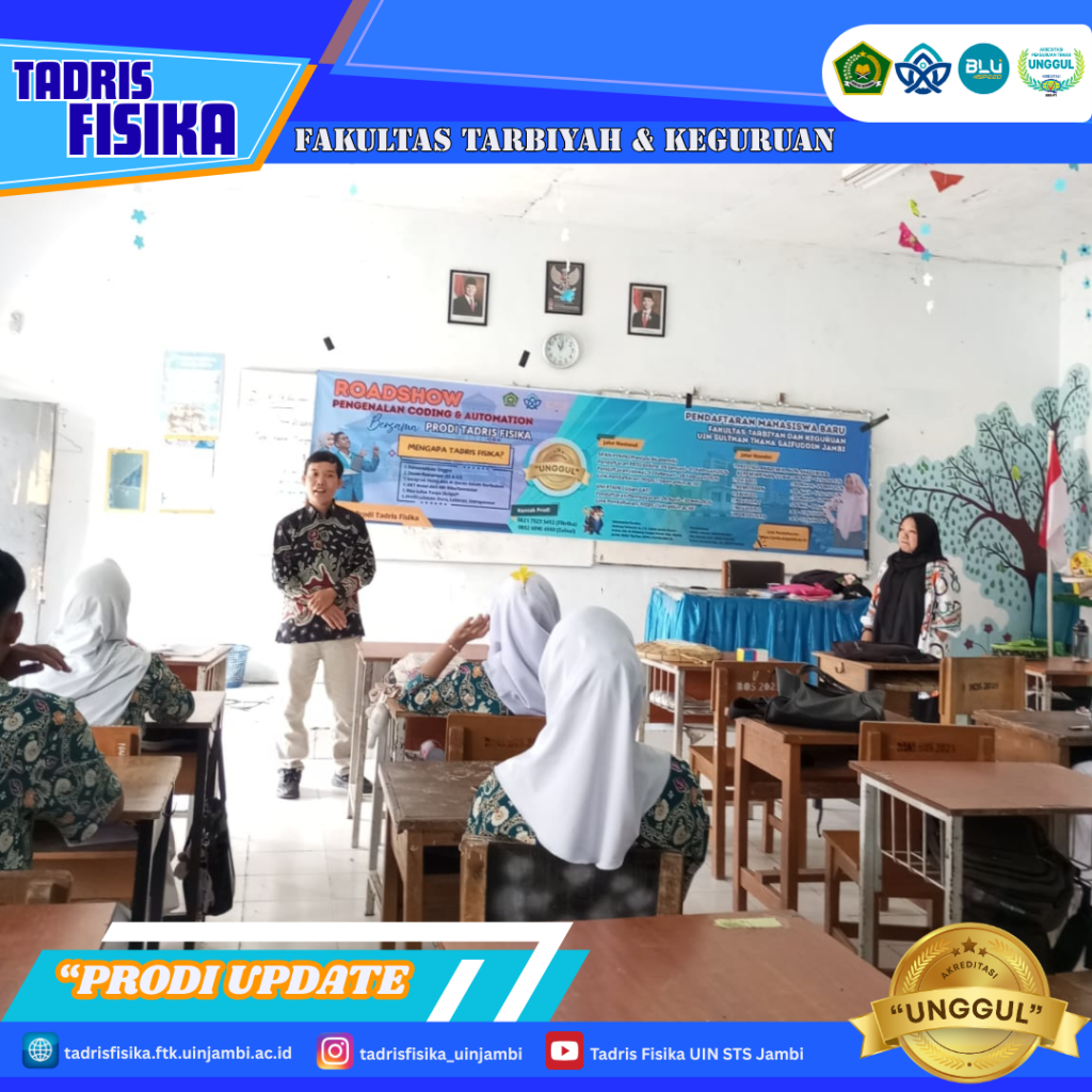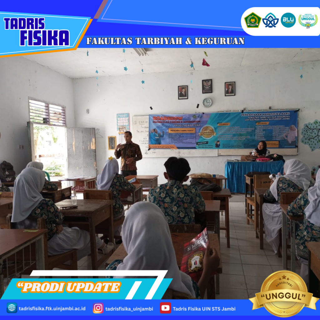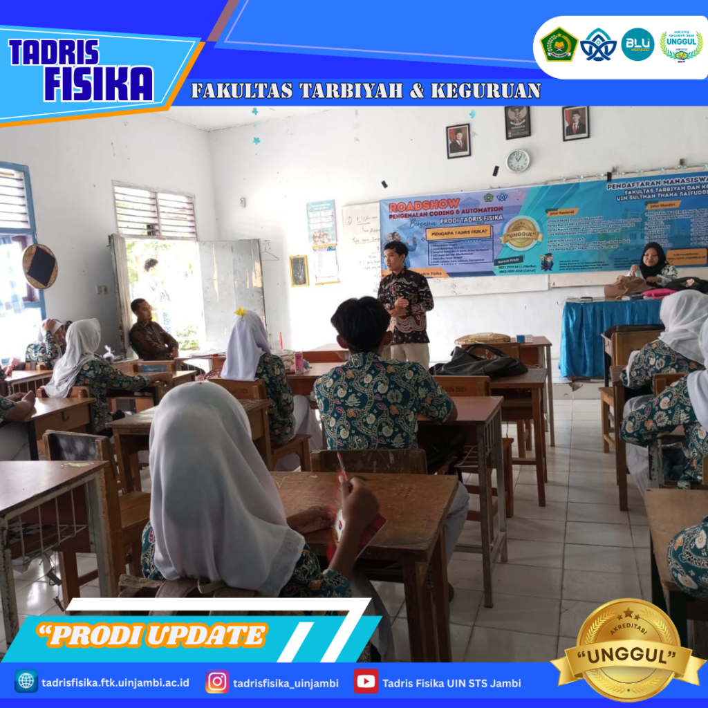 Jambi, 29 Januari 2028 — Antusiasme siswa SMAN 8 Kota Jambi terlihat jelas saat mengikuti roadshow pengenalan coding dan automation yang diselenggarakan oleh Program Studi Tadris Fisika Fakultas Tarbiyah dan Ilmu Keguruan (FTIK) UIN Sultan Thaha Saifuddin Jambi. Kegiatan ini menjadi sarana pengenalan teknologi sekaligus inspirasi bagi siswa dalam menghadapi tantangan pembelajaran di era digital.