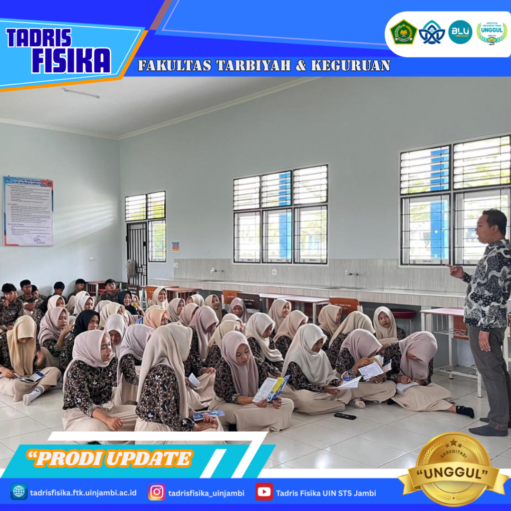 Pada sesi selanjutnya, disampaikan informasi terkait profil Prodi Tadris Fisika UIN STS Jambi, mulai dari kurikulum, aktivitas akademik dan kemahasiswaan, hingga peluang karier lulusan. Dijelaskan pula bahwa Prodi Tadris Fisika telah meraih akreditasi Unggul, menjadikannya satu-satunya program studi pendidikan fisika berakreditasi unggul di Provinsi Jambi.