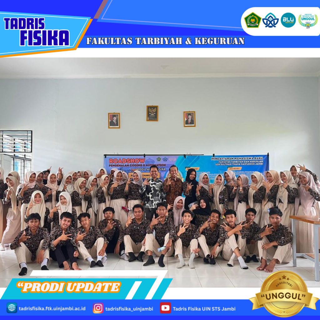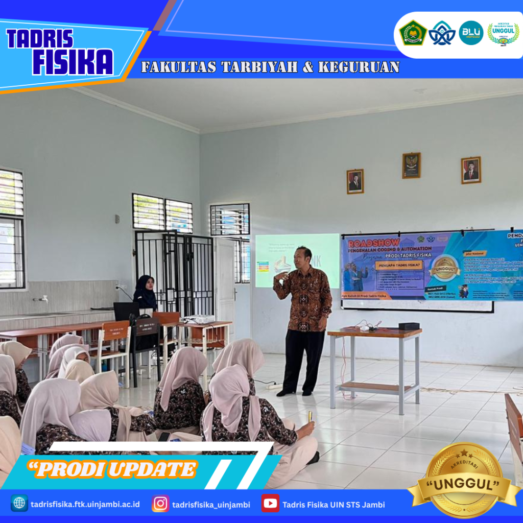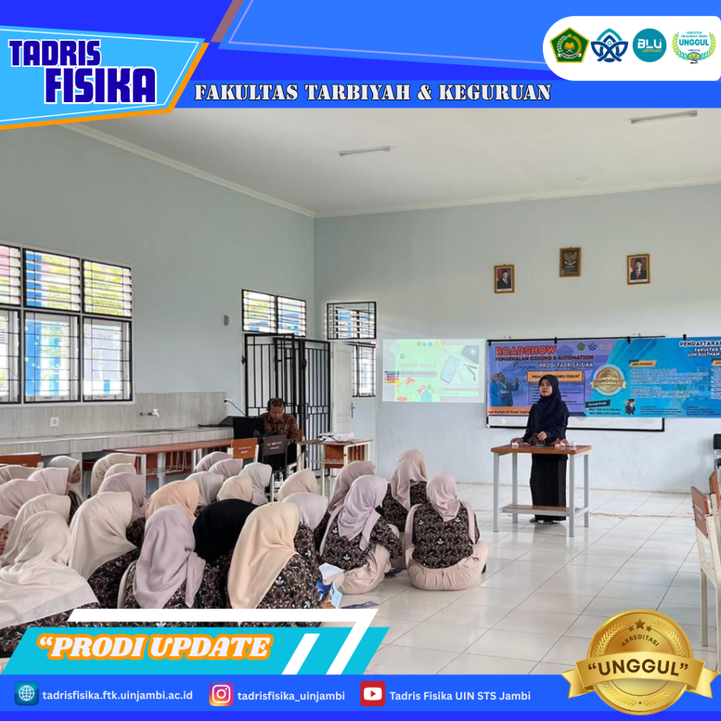 Muaro Jambi, 29 Januari 2028 – Suasana pembelajaran di SMAN 15 Muaro Jambi tampak berbeda saat Program Studi Tadris Fisika Fakultas Tarbiyah dan Ilmu Keguruan (FTIK) UIN Sultan Thaha Saifuddin Jambi menggelar roadshow edukasi teknologi. Kegiatan ini mengombinasikan pengenalan coding dan automation dengan sosialisasi pendaftaran mahasiswa baru bagi siswa kelas akhir.