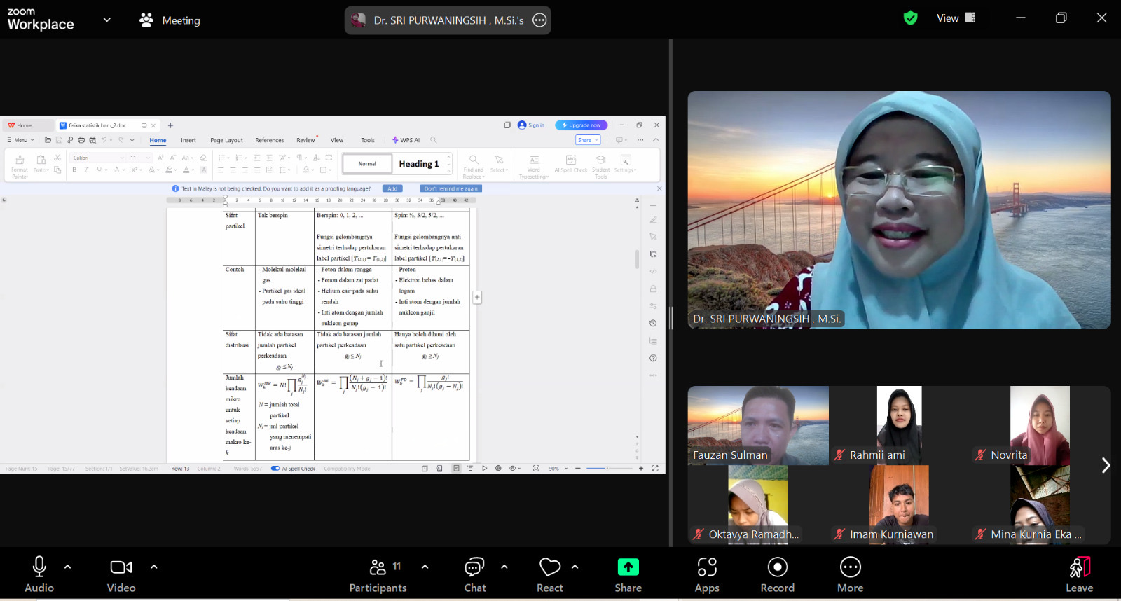Kegiatan ini diselenggarakan secara daring melalui platform Zoom Meeting pada Jumat, 9 Mei 2025, dan diikuti oleh mahasiswa semester akhir yang sedang menempuh mata kuliah Fisika Statistik, serta turut dihadiri oleh dosen pengampu, Fauzan Sulman, M.Pd.